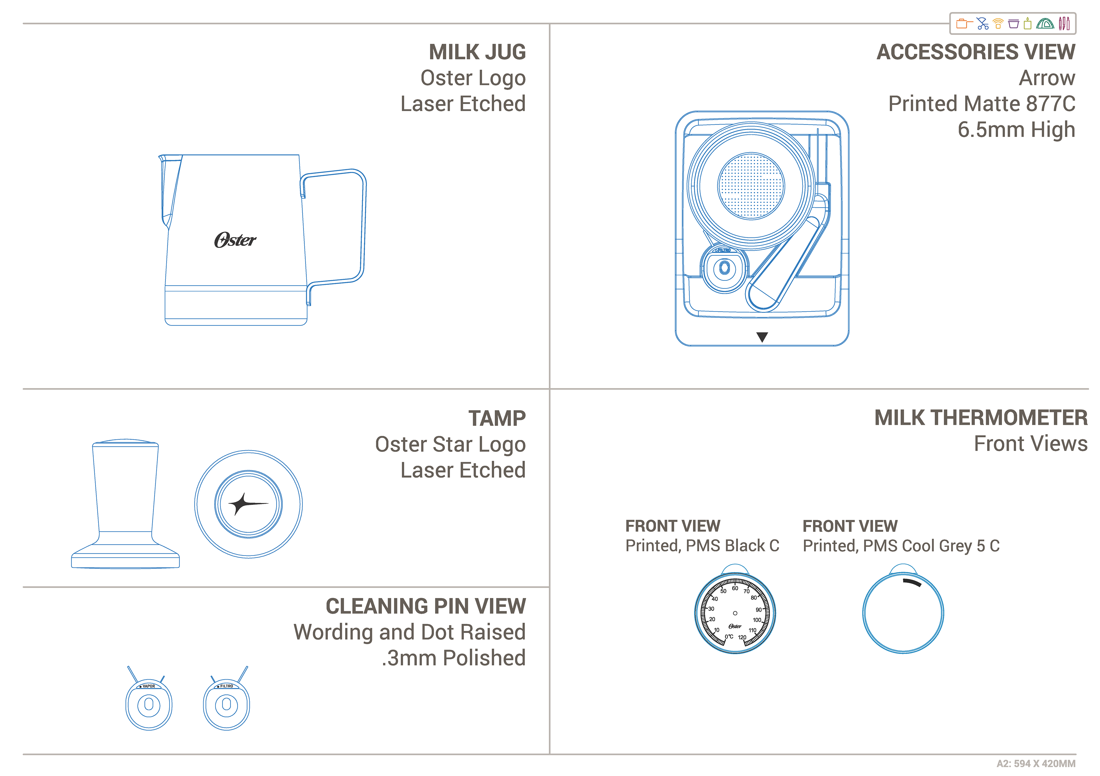 Global Espresso Machine Project - duration 1 year - I was the lead Stylemaster in 2022-2023 for this project tasked with completing Master Art and CMF documents. During this time I worked side-by-side with my cross-functional partners and suppliers to guarantee proper layout for the on-product artwork and colors on these products. Below you will see the three global brands and my Master Art documentation. Enjoy!